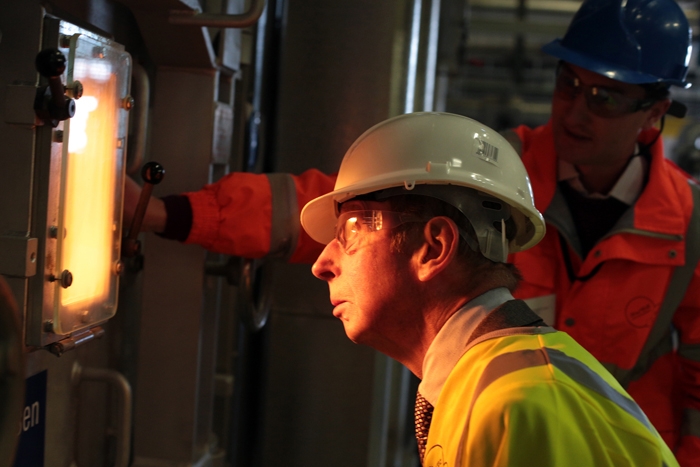 Edward Campbell-Preston, SITA UK Graduate Engineer, shows HRH The Duke of Kent the furnace