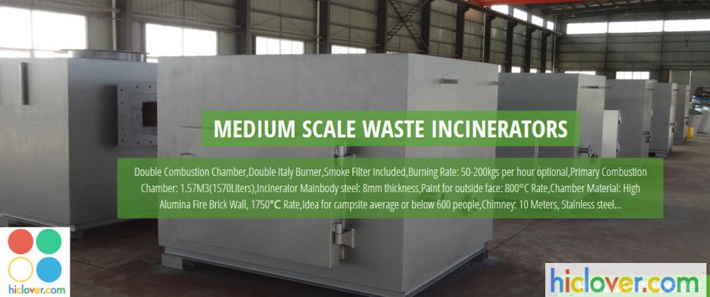 Regular model incinerator for market with burning rate from 10kgs to 500kgs per hour and we always proposal customer send us their require details, like waste material, local site fuel and power supply, incinerator operation time, etc, so we can proposal right model or custom made with different structure or dimensions.
